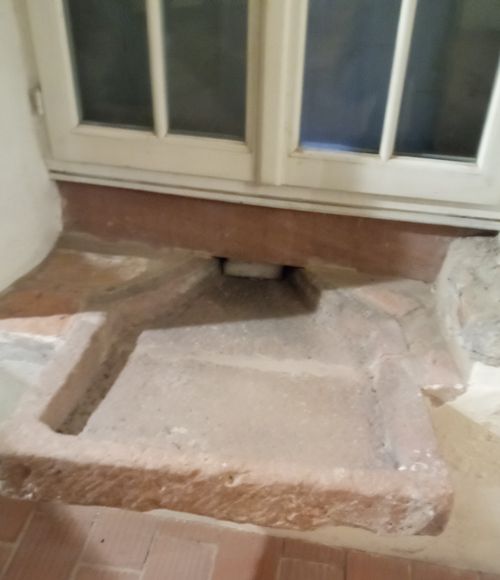 Au rez-de-chaussée, il y aussi une cuisine avec un évier en grès mais le four a disparu.