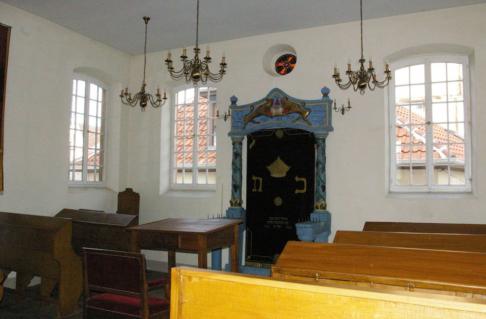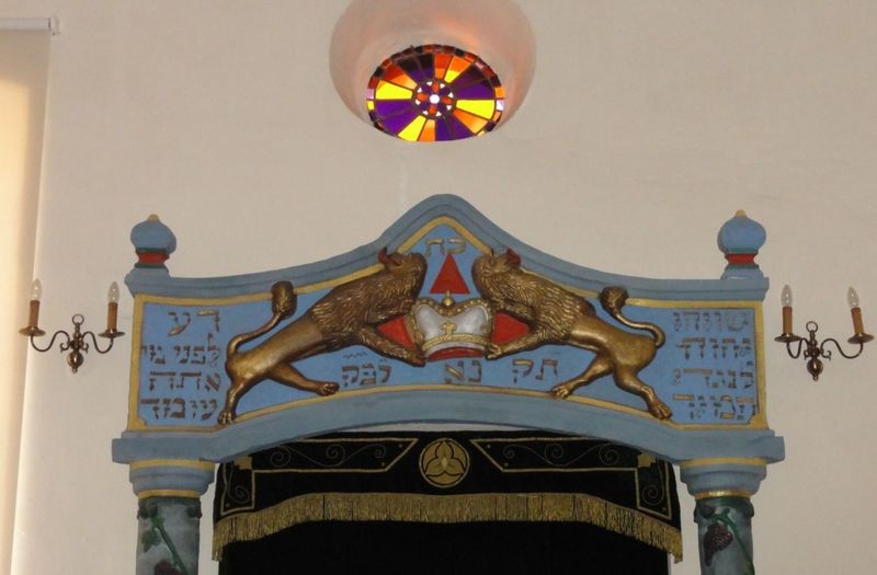 A l’entrée, une fontaine de pierre qui servait aux ablutions pour les mains prescrites par les rites est plus ancienne encore que la synagogue elle-même : sa date hébraïque correspond à l’année 1744.
