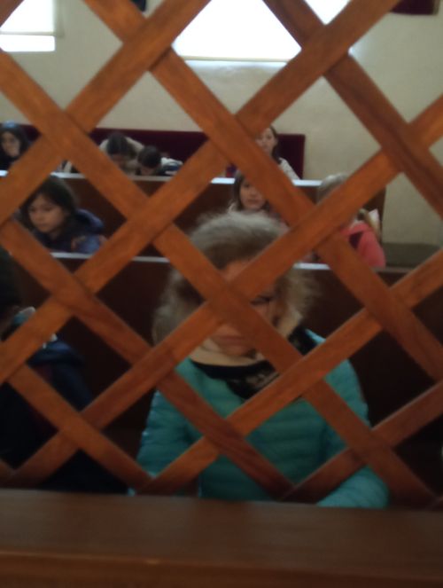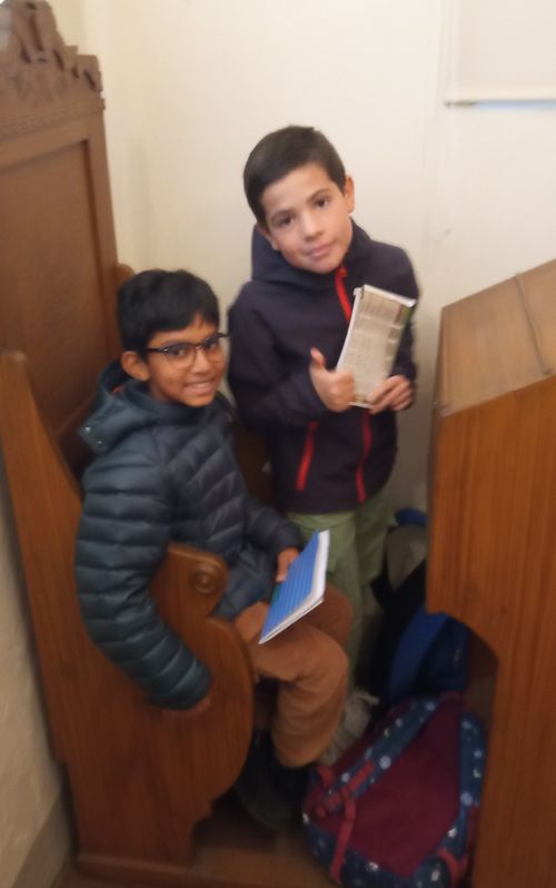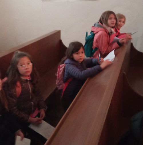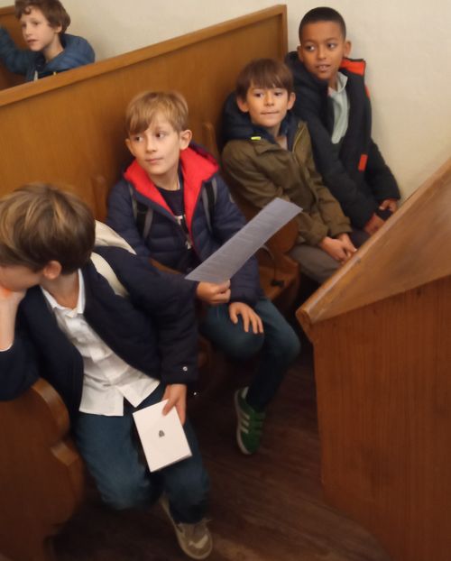 A l'étage il y a le lieu de prière avec ses bancs de bois
