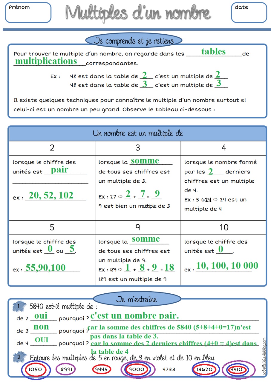 LES MULTIPLES DE 2, 3, 4, 5, 9 et 10