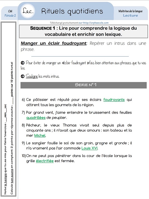 LIRE POUR COMPRENDRE LA LOGIQUE DU VOCABULAIRE ET ENRICHIR DON LEXIQUE : Manger un éclair foudroyant : Semaine 13 Jour 3