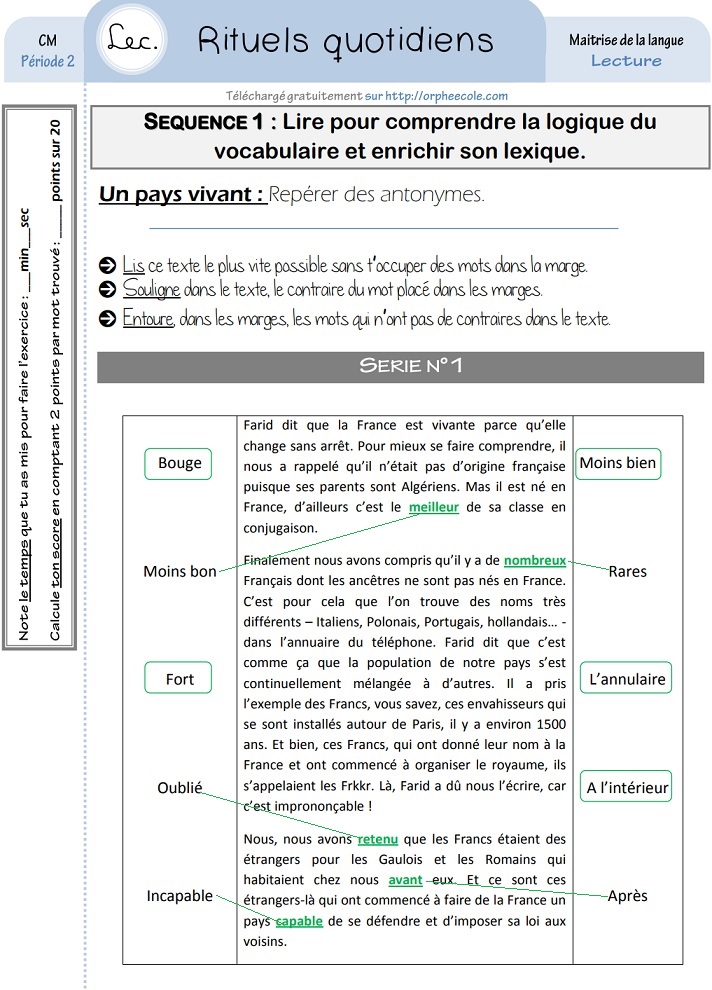 LIRE POUR COMPRENDRE LA LOGIQUE DU VOCABULAIRE ET ENRICHIR DON LEXIQUE : UN PAYS VIVANT (Semaine 14 Jour 3)
