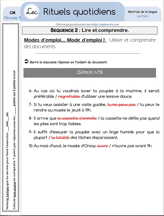 LIRE POUR COMPRENDRE : Mode d'emploi... Mode d'emploi : Semaine 19 JOUR 2