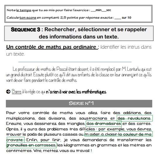 RECHERCHER, SÉLECTIONNER ET SE RAPPELER DES INFORMATIONS DANS UN TEXTE : SÉQUENCE N°3
