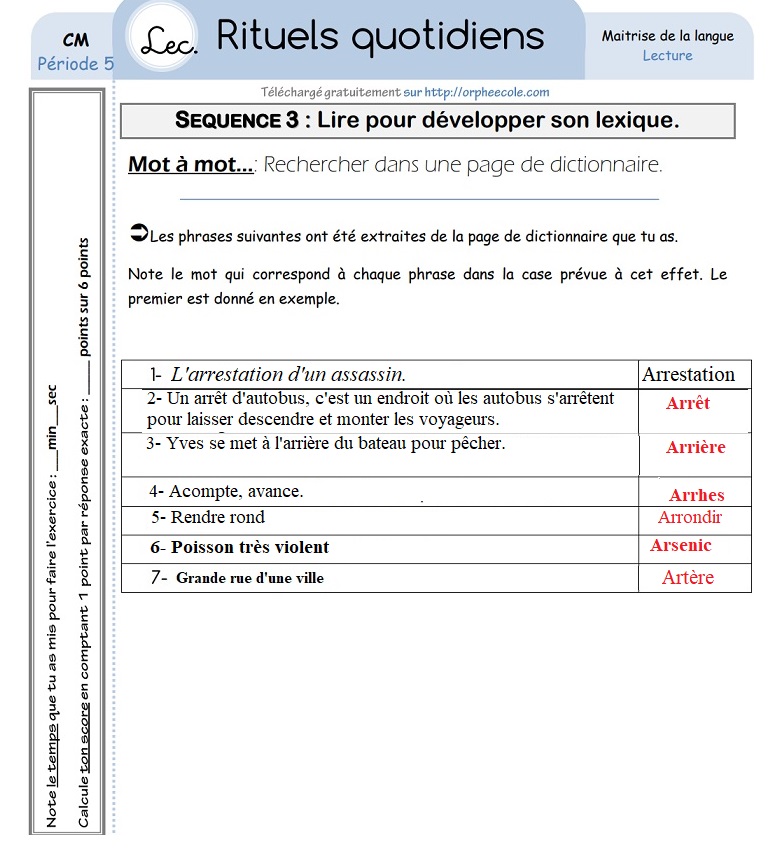 LIRE POUR DÉVELOPPER SON LEXIQUE : SEMAINE 7 Jour N°1