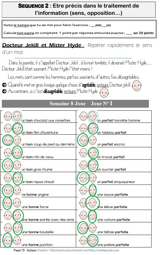 ÊTRE PRÉCIS DANS LE TRAITEMENT DE L'INFORMATION (SENS, OPPOSITION...) : Semaine 10 Jour 1