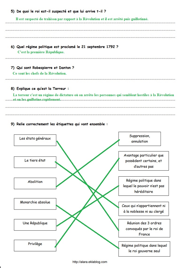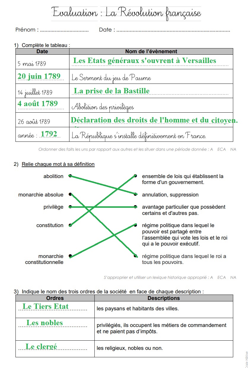 ÉVALUATION : LA RÉVOLUTION FRANÇAISE