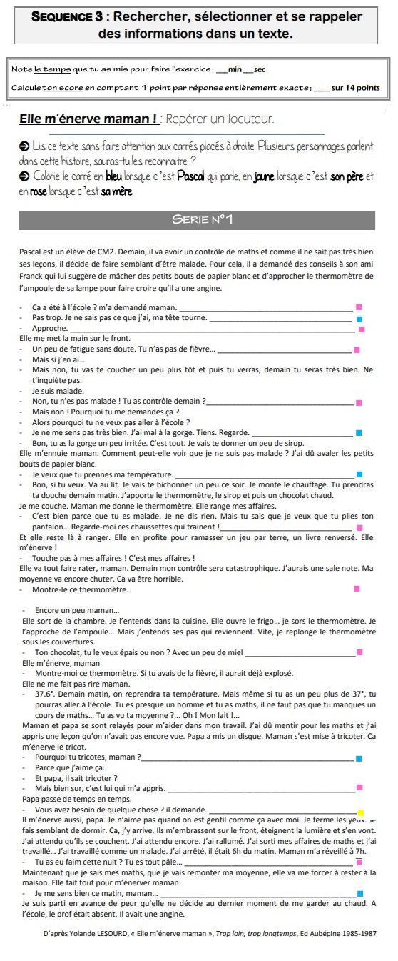RECHERCHER, SÉLECTIONNER ET SE RAPPELER DES INFORMATIONS DANS UN TEXTE : Semaine 12 Jour 1