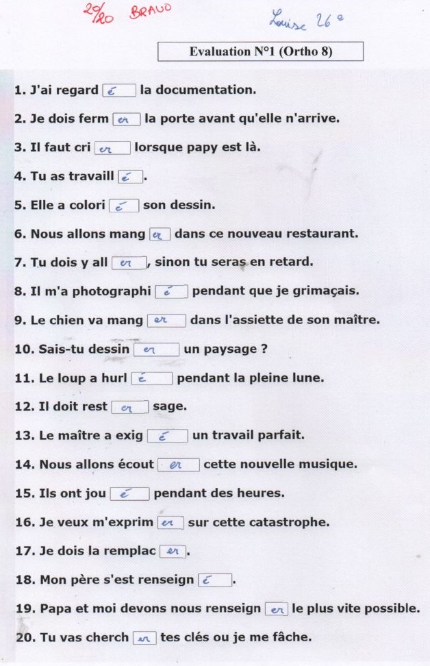 PARTICIPE PASSE EN é OU INFINITIF EN er : ORTHO 8