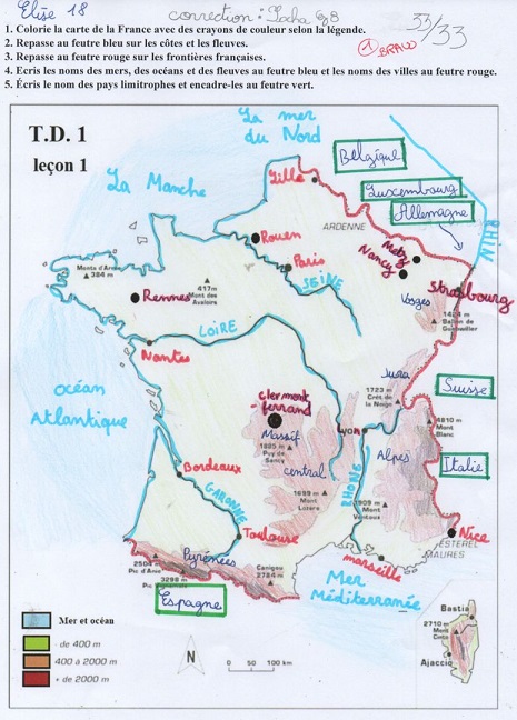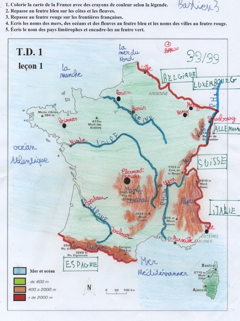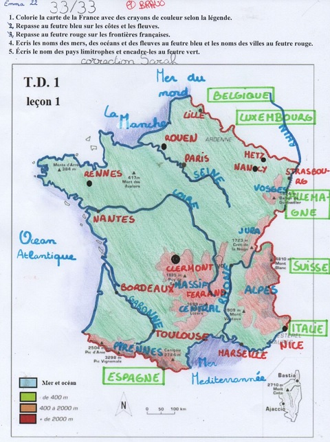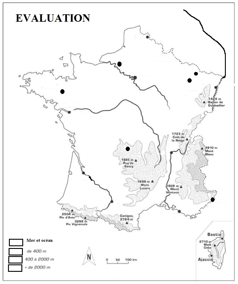 ÉVALUATION N°1 (leçon 1) : la France : ses montagnes, ses fleuves, ses mers et ses pays limitrophes et la France lointaine