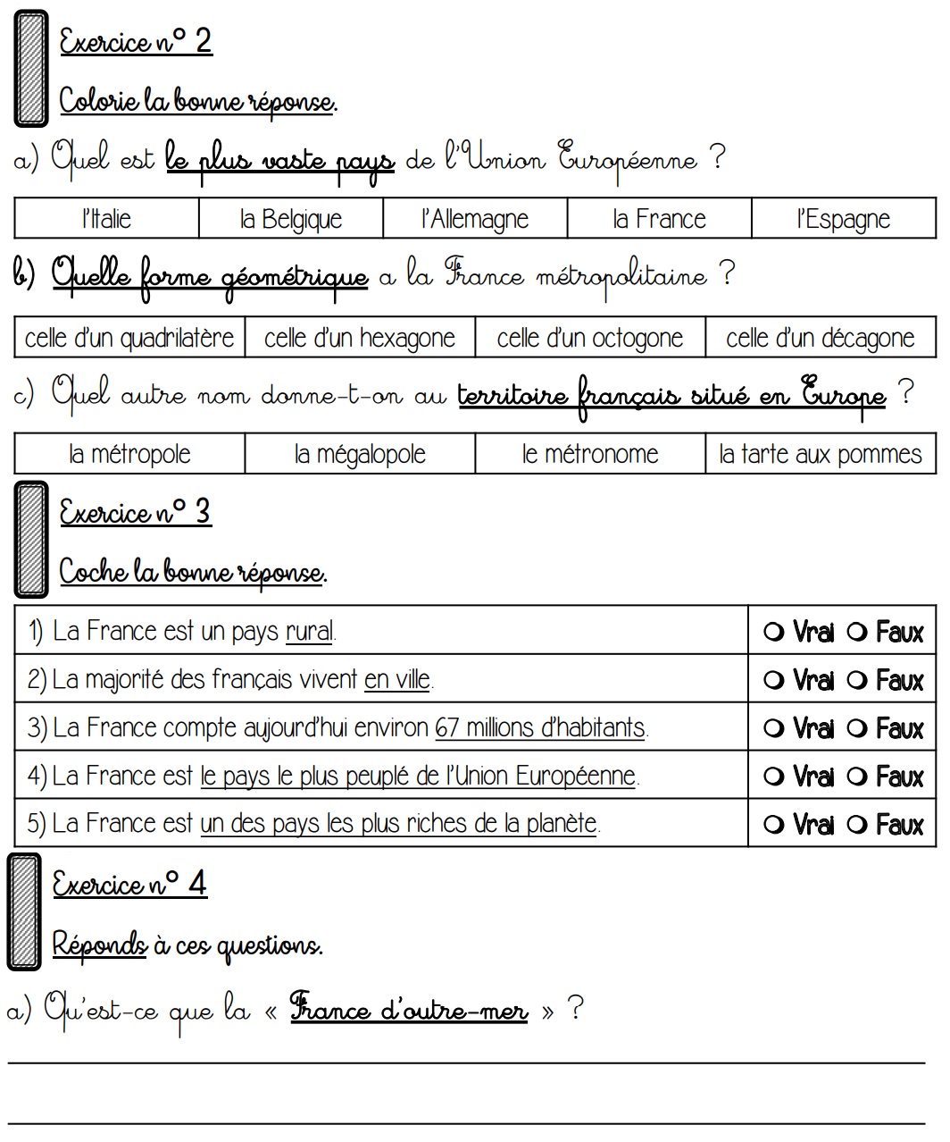 ÉVALUATION N°2 (leçon 1) : la France : ses montagnes, ses fleuves, ses mers et ses pays limitrophes et la France lointaine