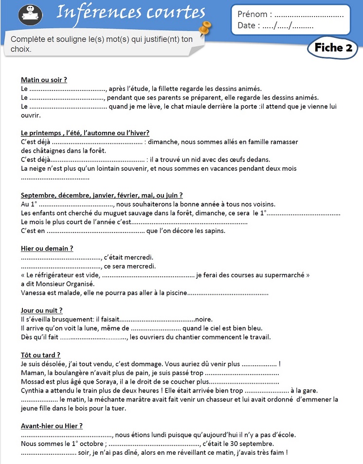 Inférences courtes (Semaine 27 Jour 1)