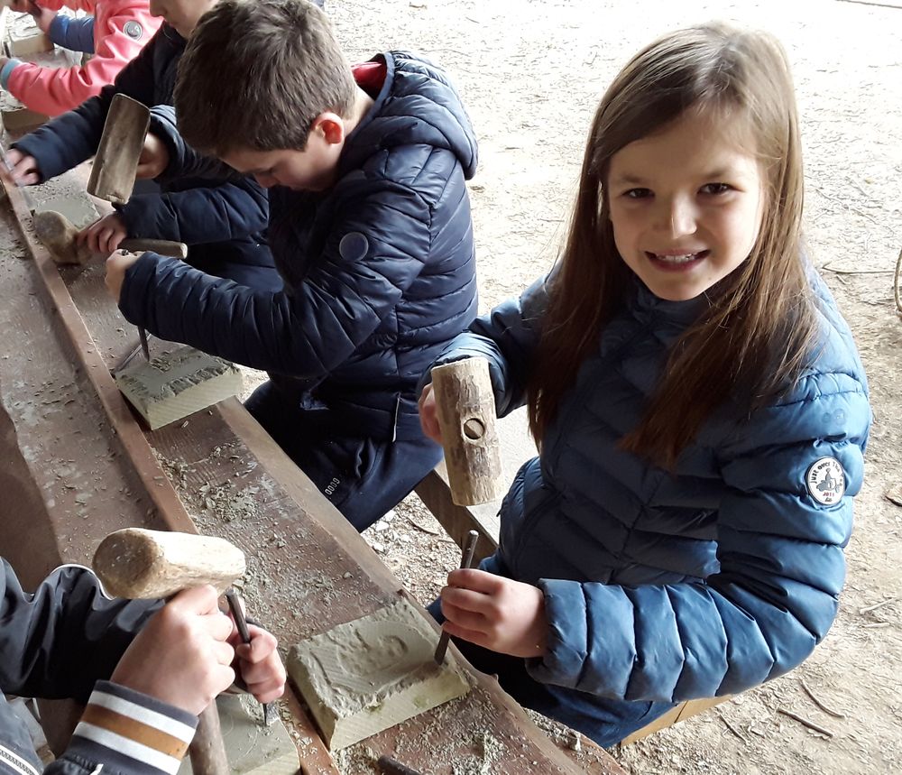 GUEDELON : l'atelier taille de pierre