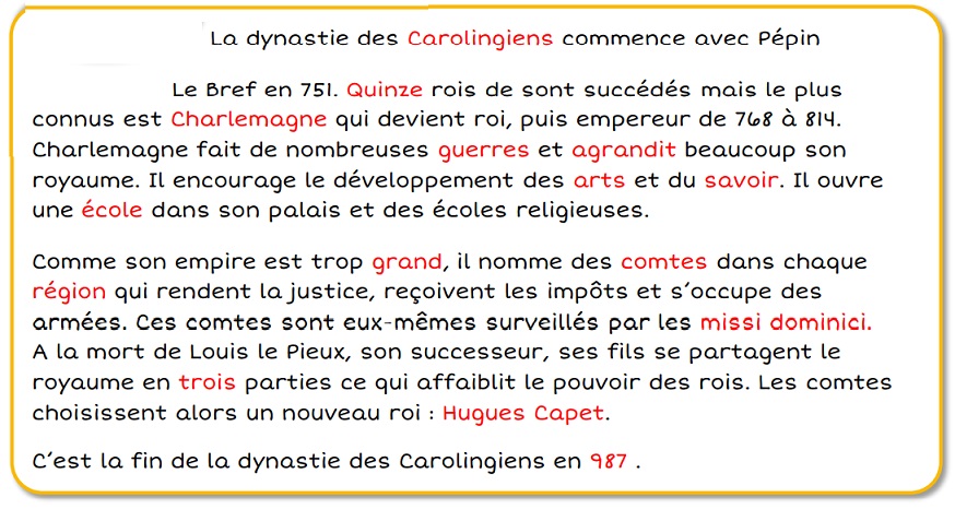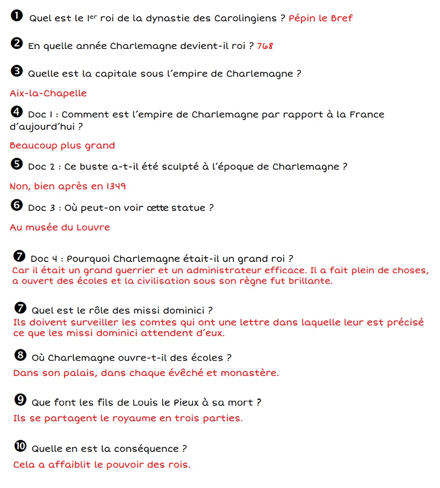 Réponses des exercices pour préparer l'évaluation : les Carolingiens