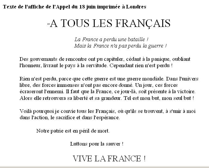 L'AFFICHE DE L'APPEL DU 18 JUIN 1940