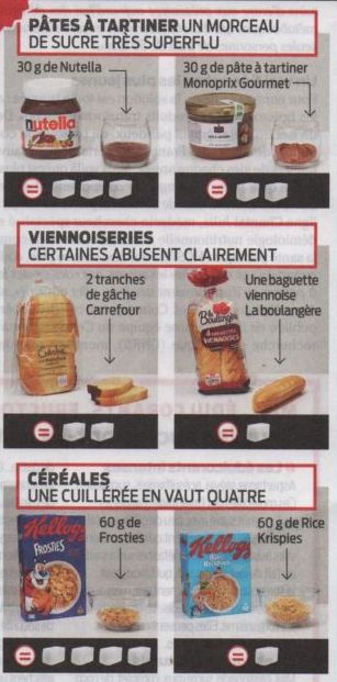 LES GOÛTERS ET LEURS ÉQUIVALENTS EN MORCEAUX DE SUCRE