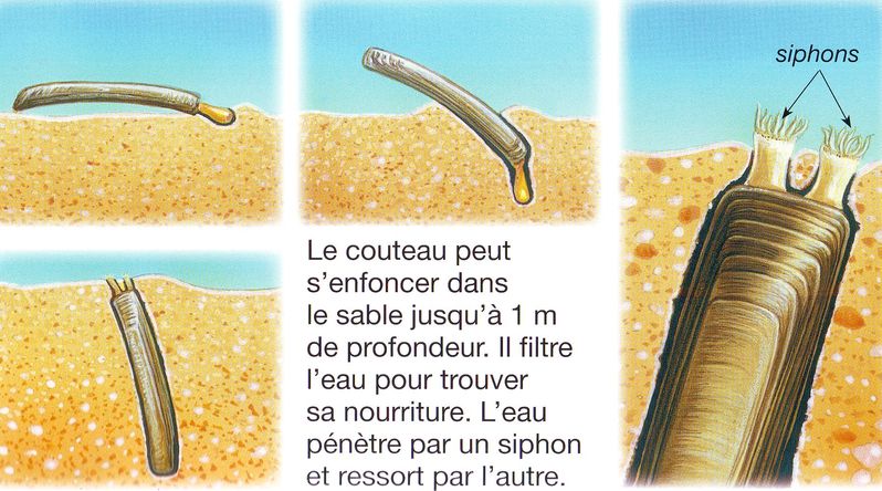 Couteau (coquillage) re-rentre dans le sable (YouTube)