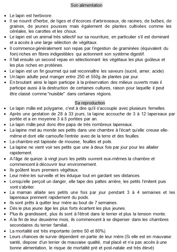 ALLAITEMENT DES LAPINS DE GARENNE.