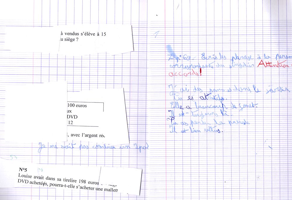 Les exercices sont présentés sans soin (mal découpés et mal collés), la date de la correction n'est pas