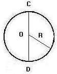 Cercle de centre O et de rayon R et de diamètre CD