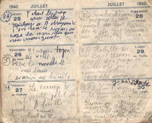 Le soldat CHETOCHINE a rédigé un journal durant l’année 1940.
