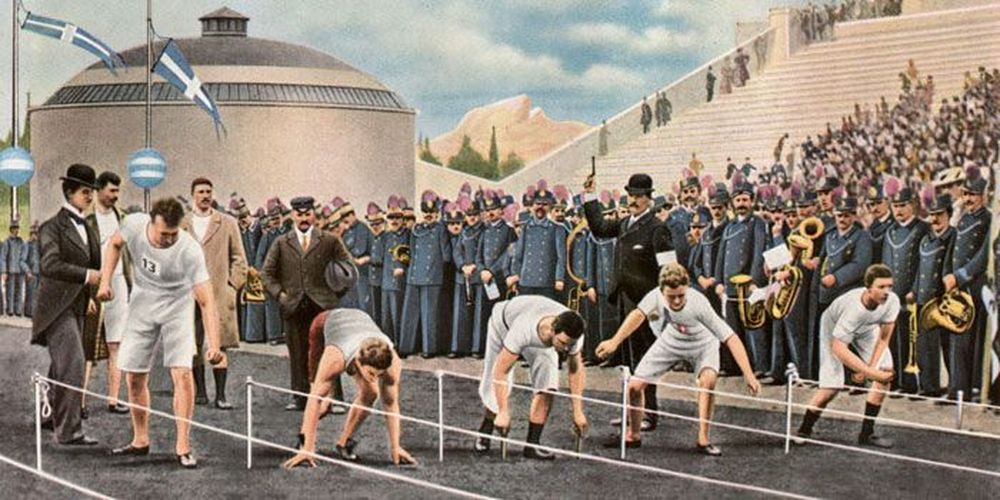 - 6 au 15 avril 1896 : premiers Jeux Olympiques modernes organisés par Pierre de Coubertin.