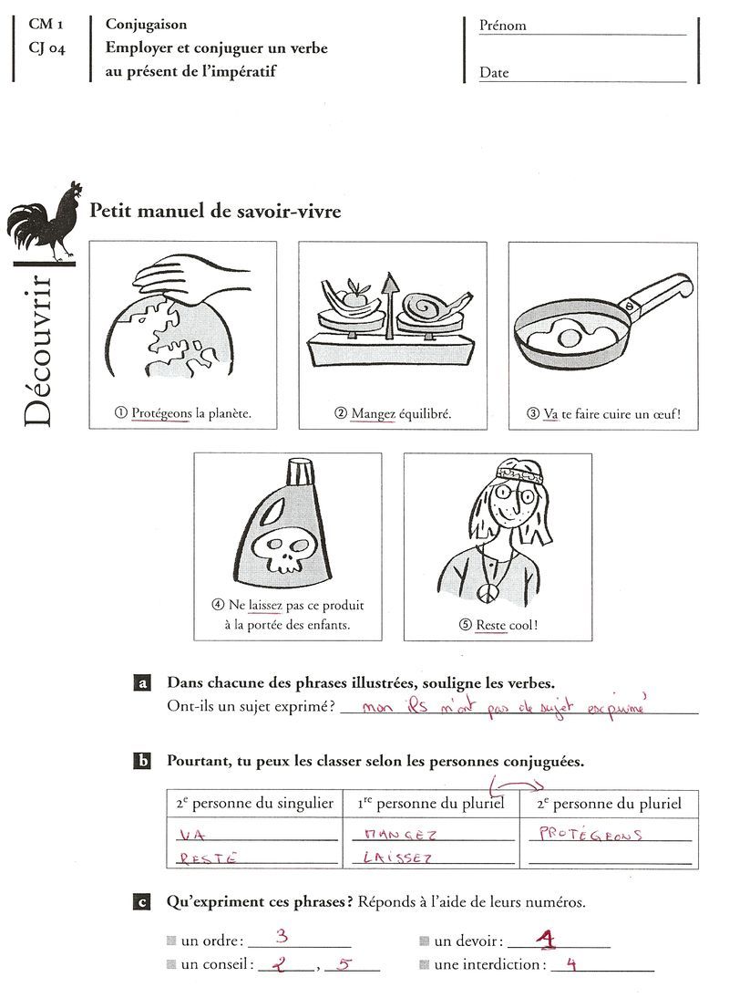 EMPLOYER ET CONJUGUER UN VERBE AU PRÉSENT DE L'IMPÉRATIF