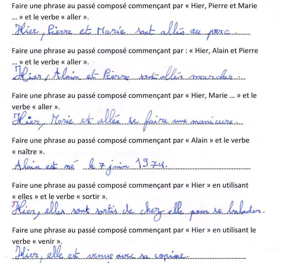 CONSTRUIRE DES PHRASES AU PASSÉ COMPOSÉ