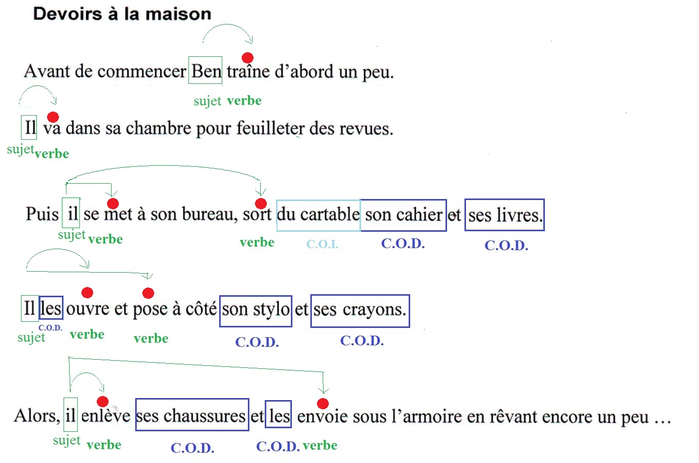 (Sujet - Verbe - C.O.D. - C.O.I.) :