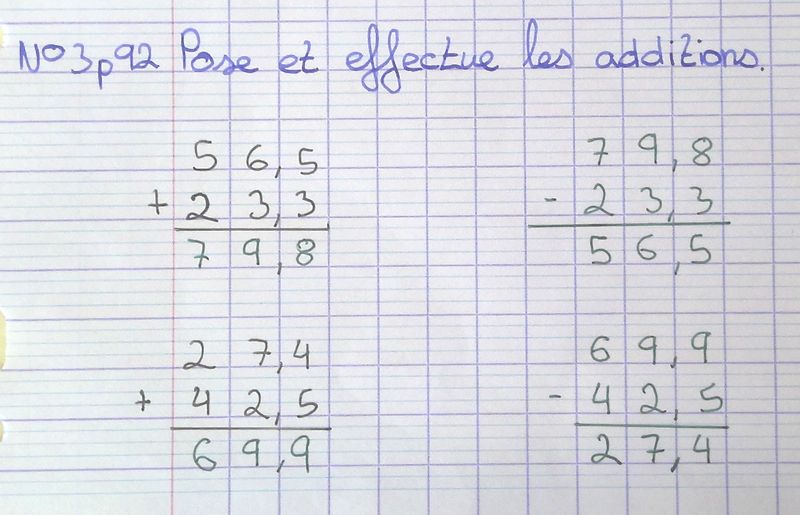 Poser une addition de deux nombres décimaux (1)