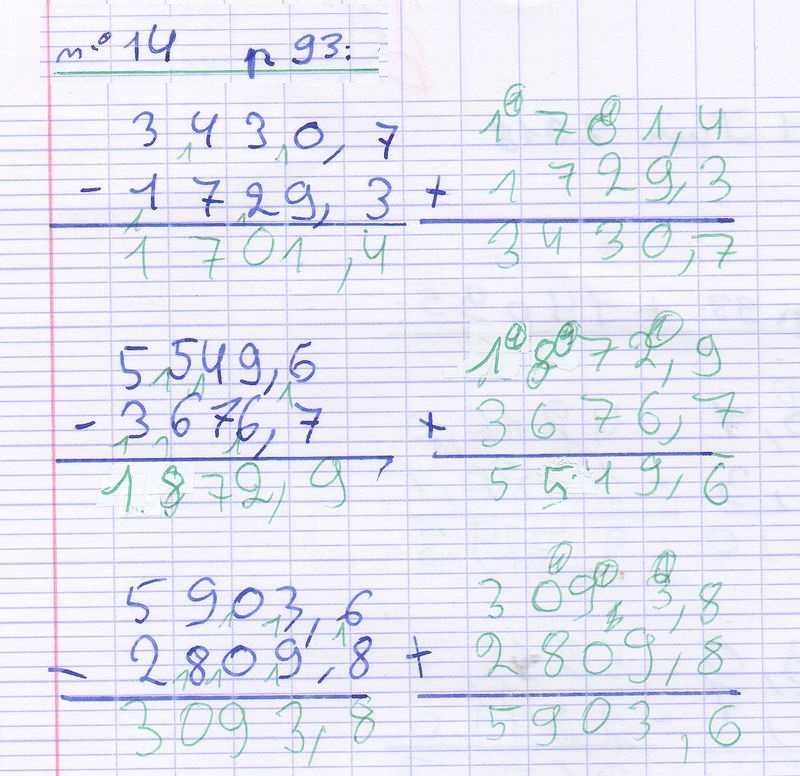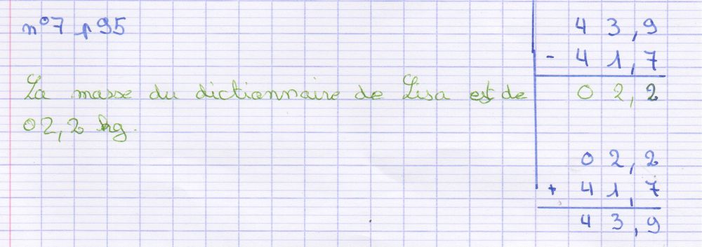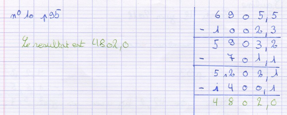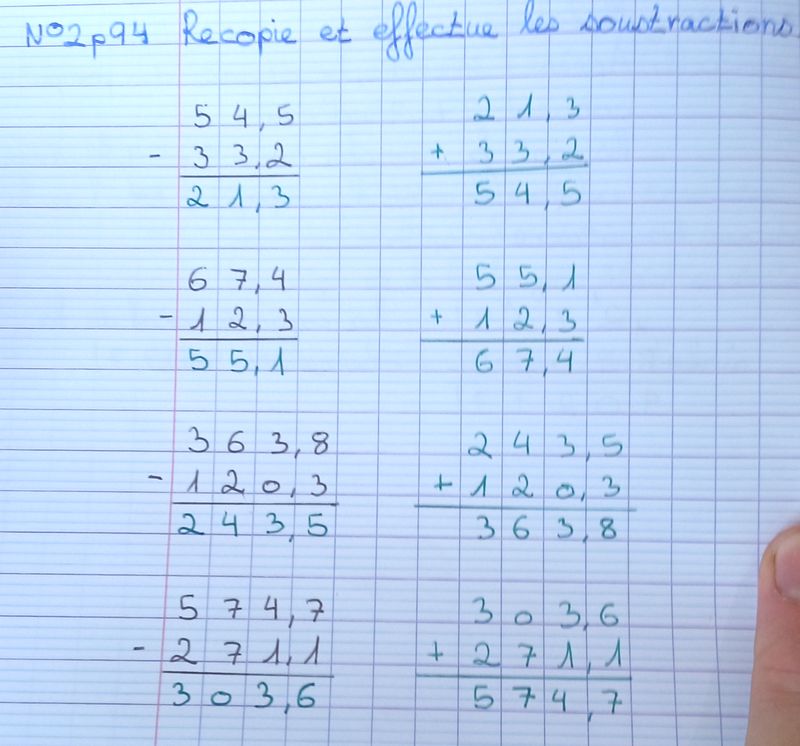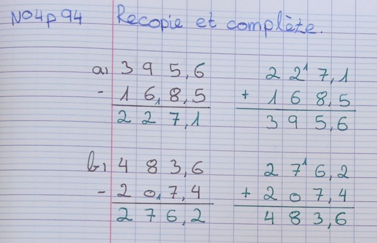 Poser une soustraction de deux nombres décimaux (1)
