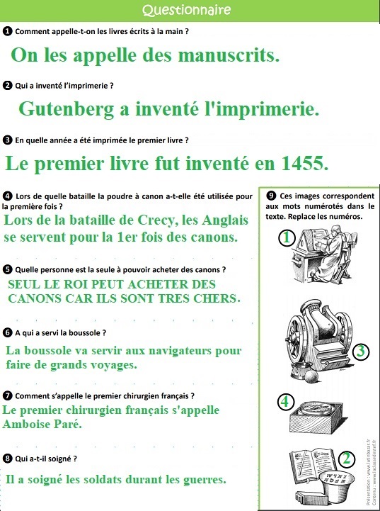 CORRECTION : LES GRANDES INVENTIONS DE LA RENAISSANCE