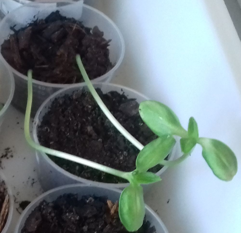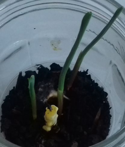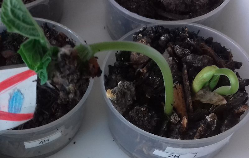 - Le N° 2 H : deux graines continuent de germer dans 50 ml de terre.