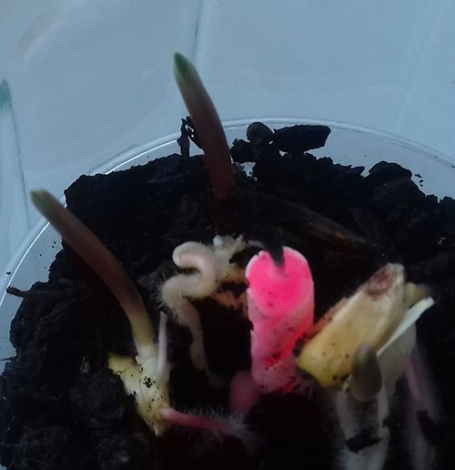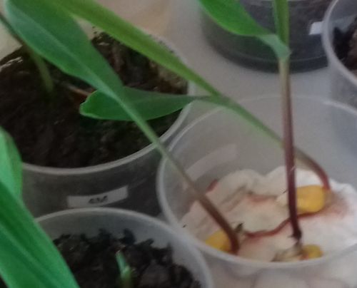 - Le N° 18 T : les deux graines continuent de germer dans 50 ml de terreau.