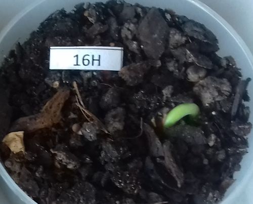 - Le N° 16 H : Une graine continue de germer dans 50 ml de terre.