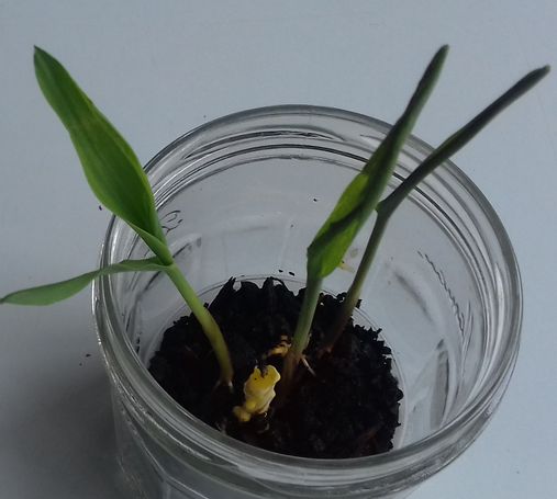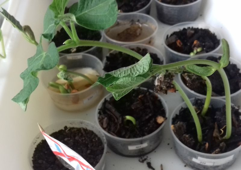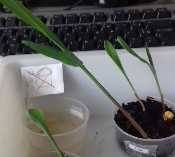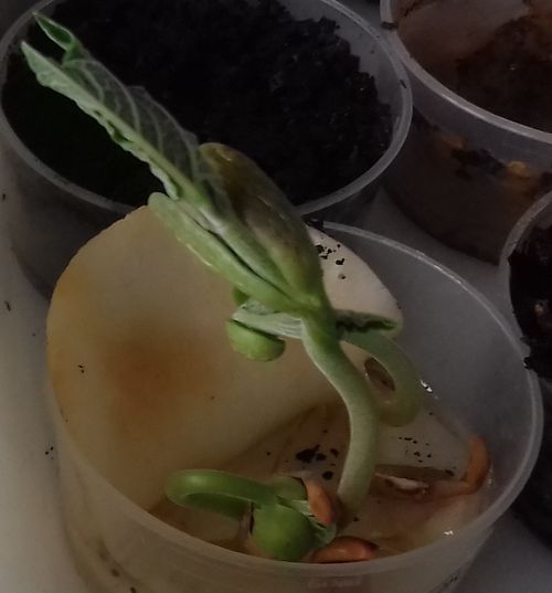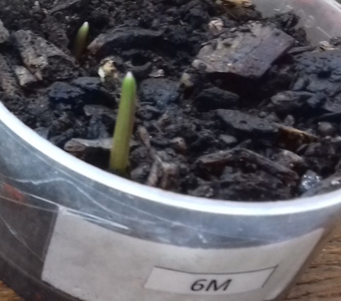 - Le N° 6 M : deux graines ont commencé à germer dans 50 ml de terre.