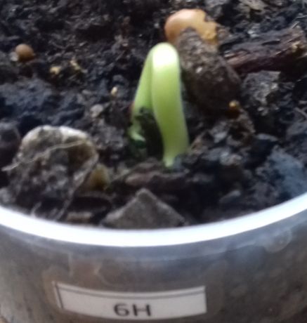 - Le N° 6 H: une graine a commencé à germer dans 50 ml de terre.