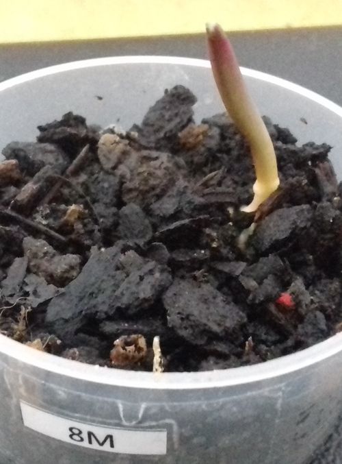 - Le N° 8 M : une graine a continué de germer dans 50 ml de terre sur l'aquarium (35°C.).