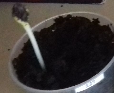 - Le N° 12 T : une graine a continué de germer dans 50 ml de terre sans lumière (dans le placard).