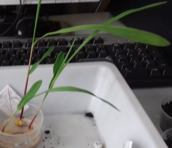 - Le N° 2 M : une graine continue de germer et au autre commence à germer dans 40 ml de terre et 10 ml de terreau.