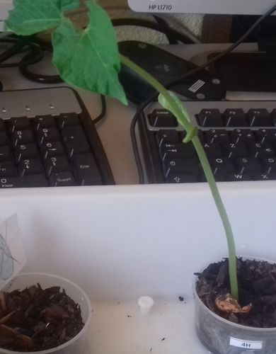 - Le N° 2 H : trois graines continuent de germer dans 50 ml de terre.