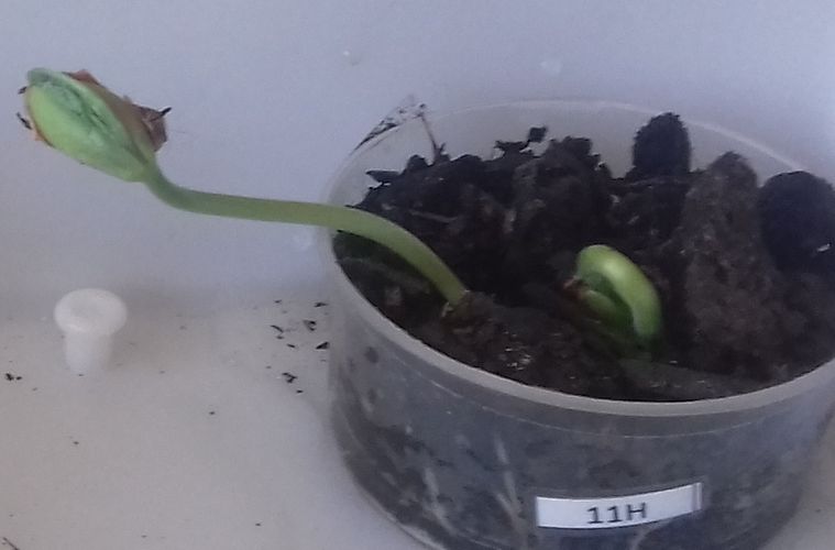 - Le N°11 H : deux graines commencent à germer dans 50 ml de terre.