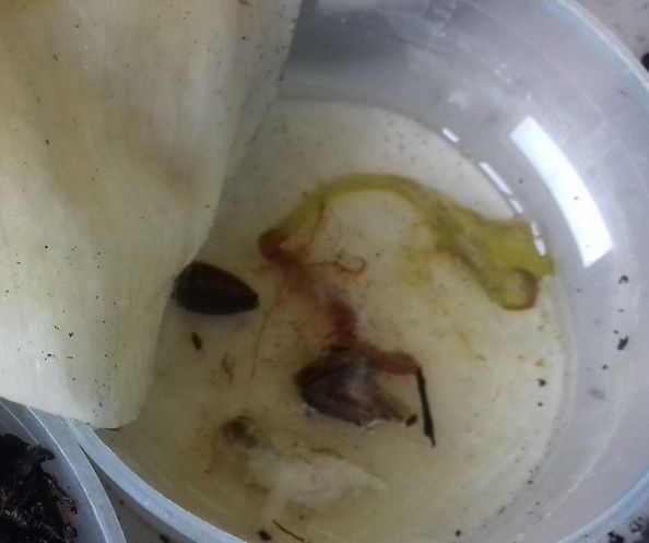 - Le N° 10 T : les deux graines continuent de se détériorer dans 50 ml de coton.