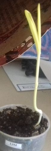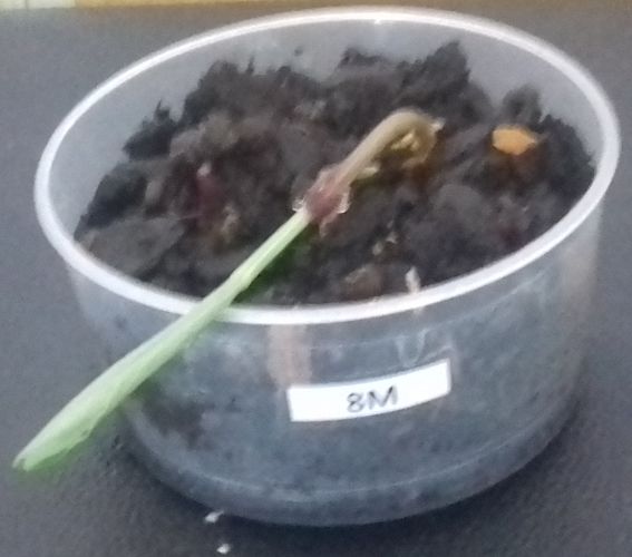 - Le N° 12 M : une graine continue de germer dans 50 ml de terre sans lumière (dans le placard).
