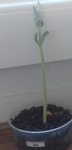 - Le N° 6 M : deux graines continuent de germer dans 50 ml de terre.