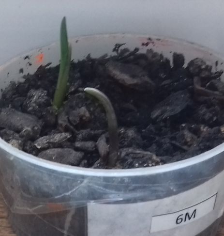 - Le N° 6 M : deux graines continuent de germer dans 50 ml de terre.