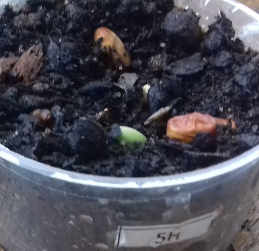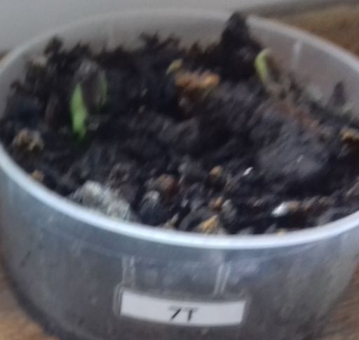 - Le N° 6 H : Une graine continue de germer dans 40 ml de terre et 10 ml de terreau.