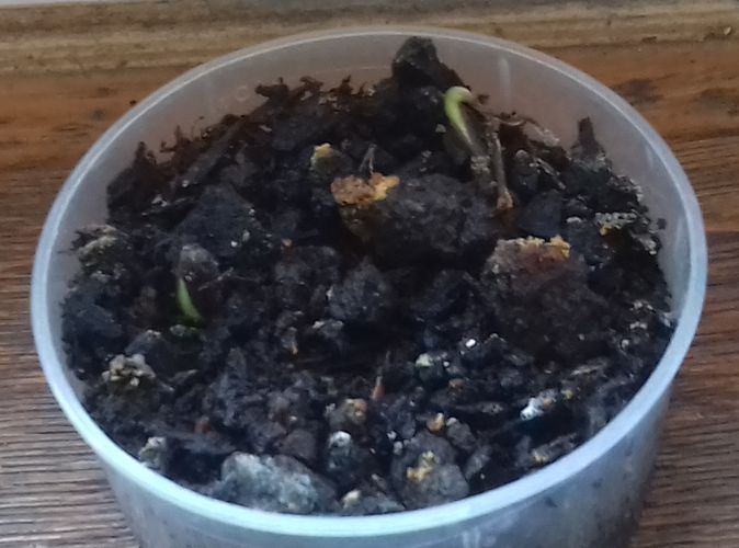 - Le N° 6 H : Une graine continue de germer dans 40 ml de terre et 10 ml de terreau.