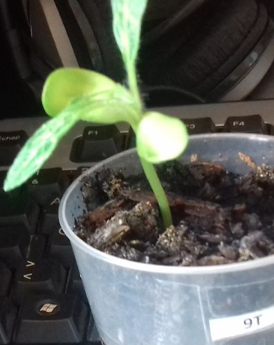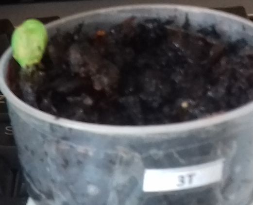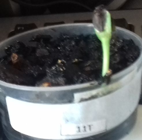 - Le N° 11 M : deux graines continuent et une a germé de germer dans 50 ml de terre.