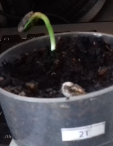 - Le N° 18 T : les deux graines continuent de germer dans 50 ml de terreau.